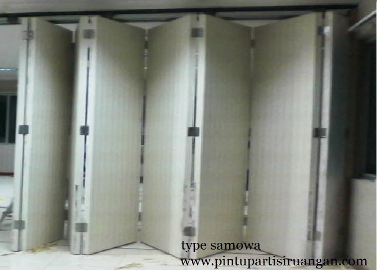 Pintu lipat Type SAMOWA merupakan pintu lipat yang penggunaanya lebih praktis dalam penyekat ruangan. Adanya engsel tengah/kupu-kupu menjadikan rangkaian pintu menjadi satu kesatuan. pintu lipat type samowa yang kami produksi merupakan Type partisi ruangan yang kami produksi ini biasanya tidak membutuhkan peredam ruangan menjadikan harganya lebih murah.